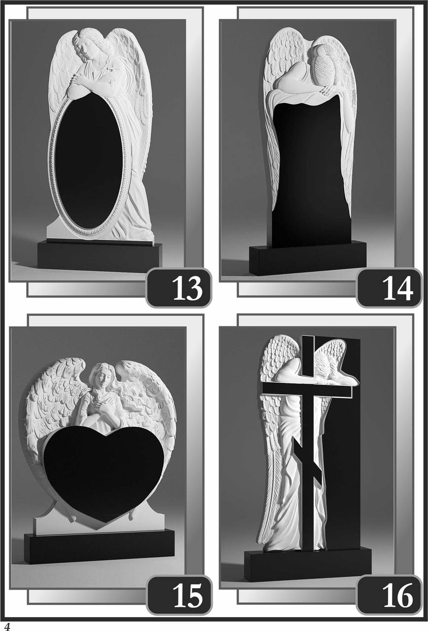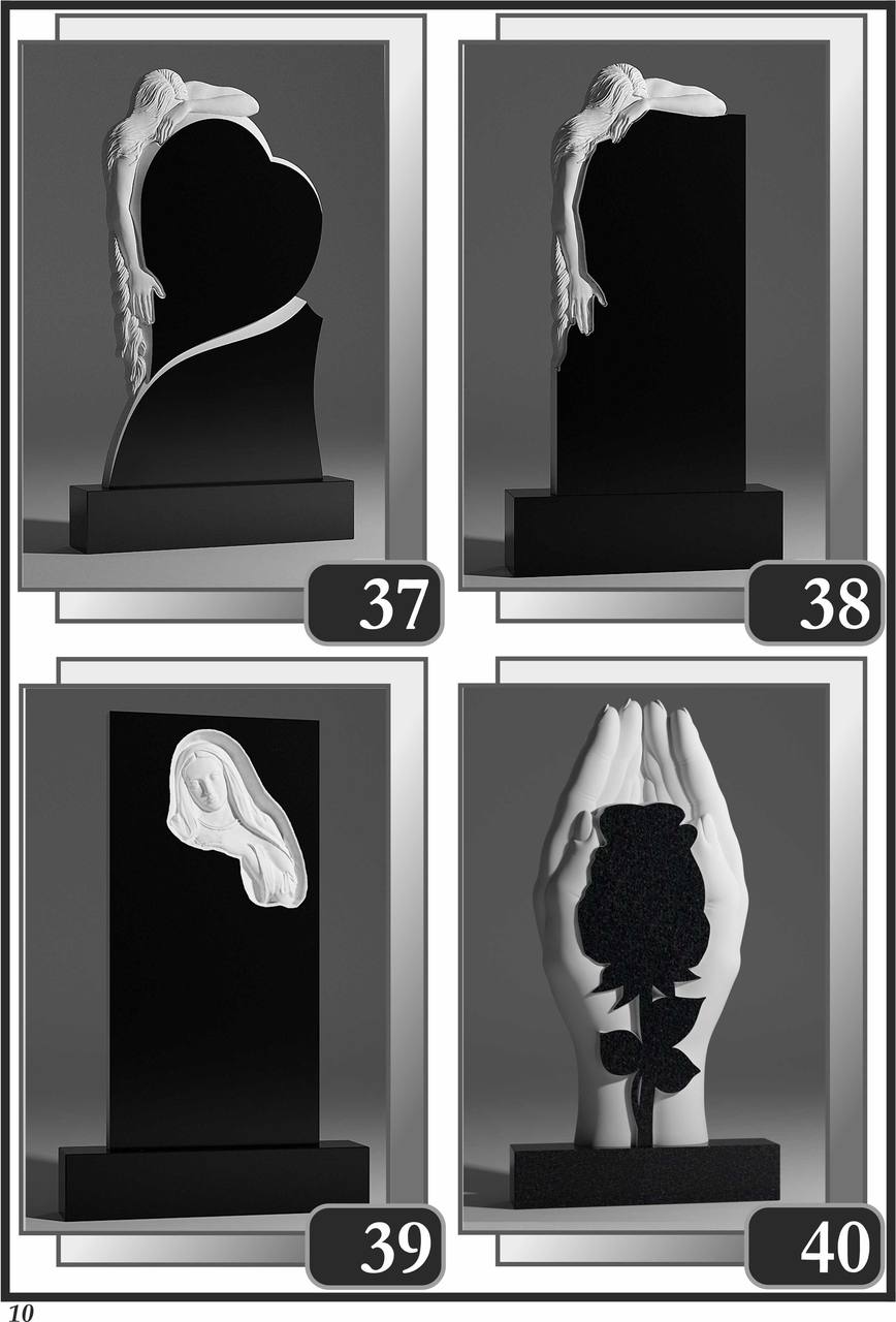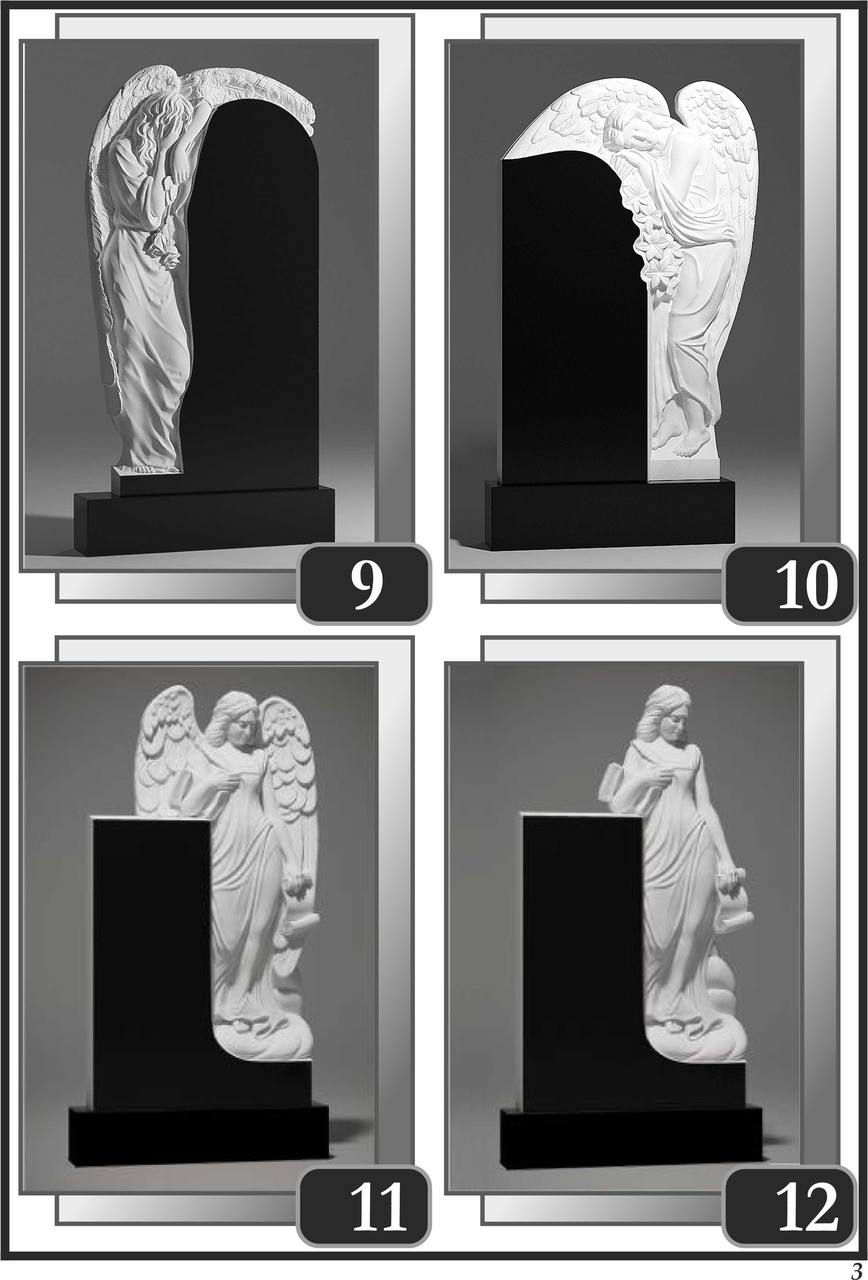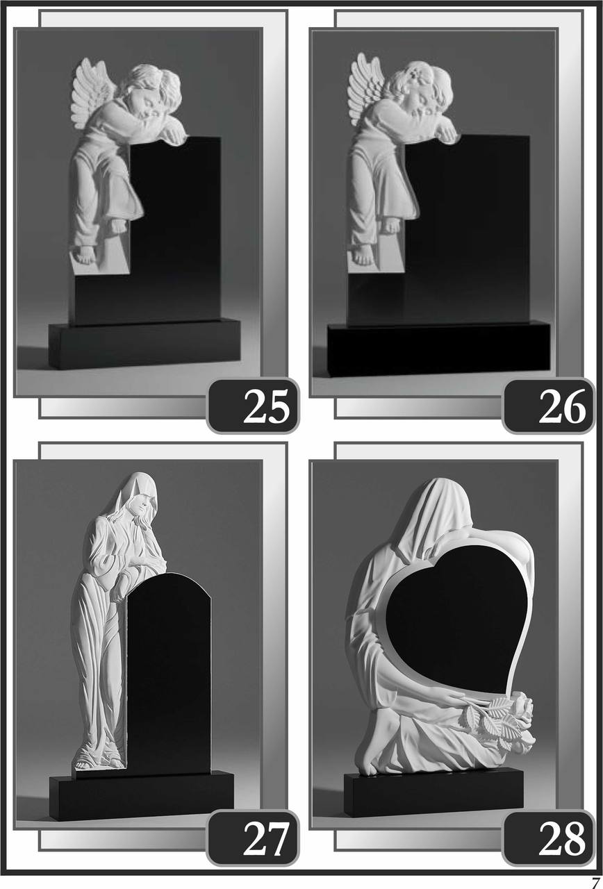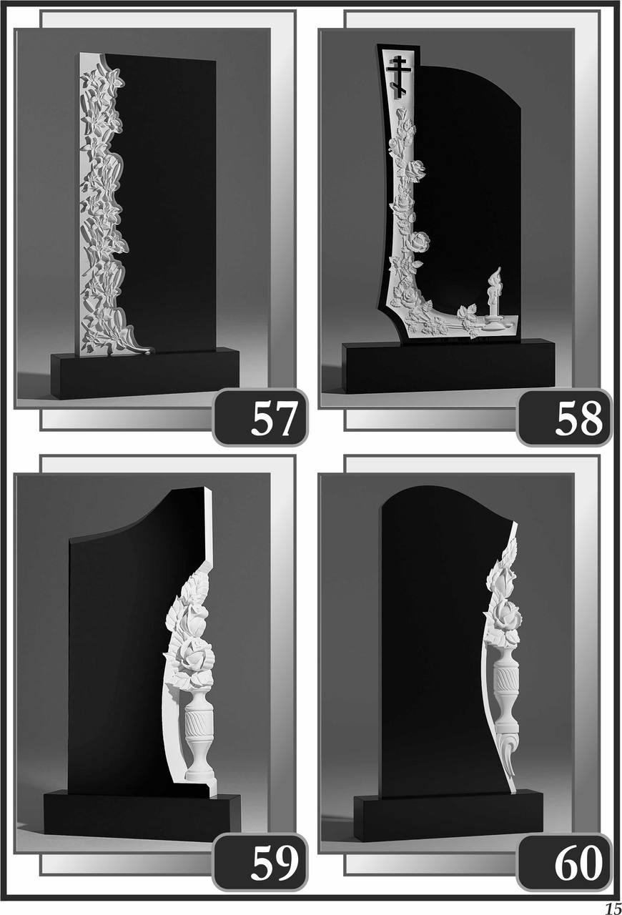 На сторінці зібрані приклади пам’ятників за основними напрямками: від одинарних і подвійних рішень до скульптурних композицій та фотоелементів.