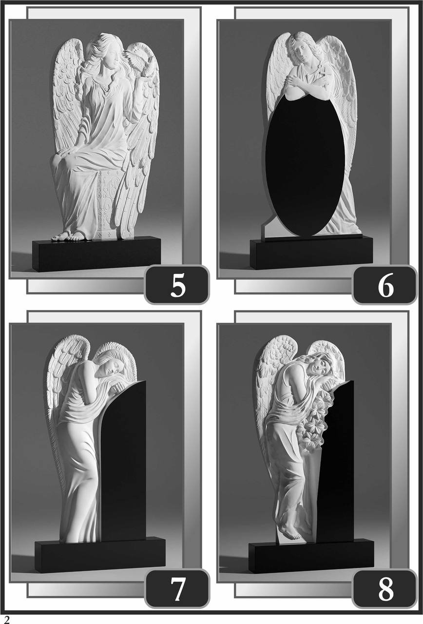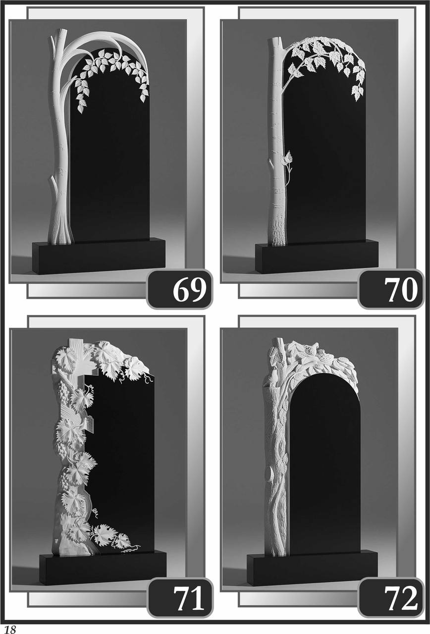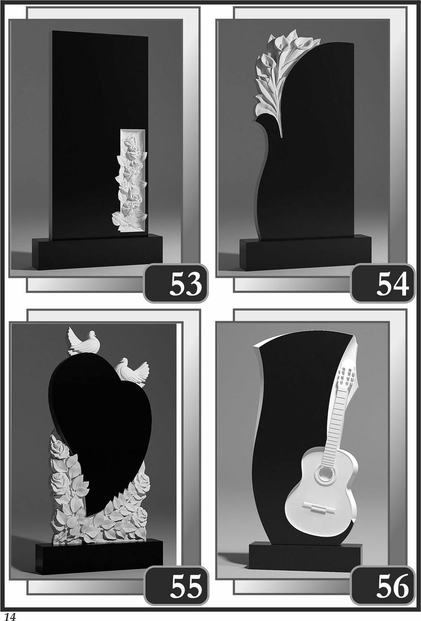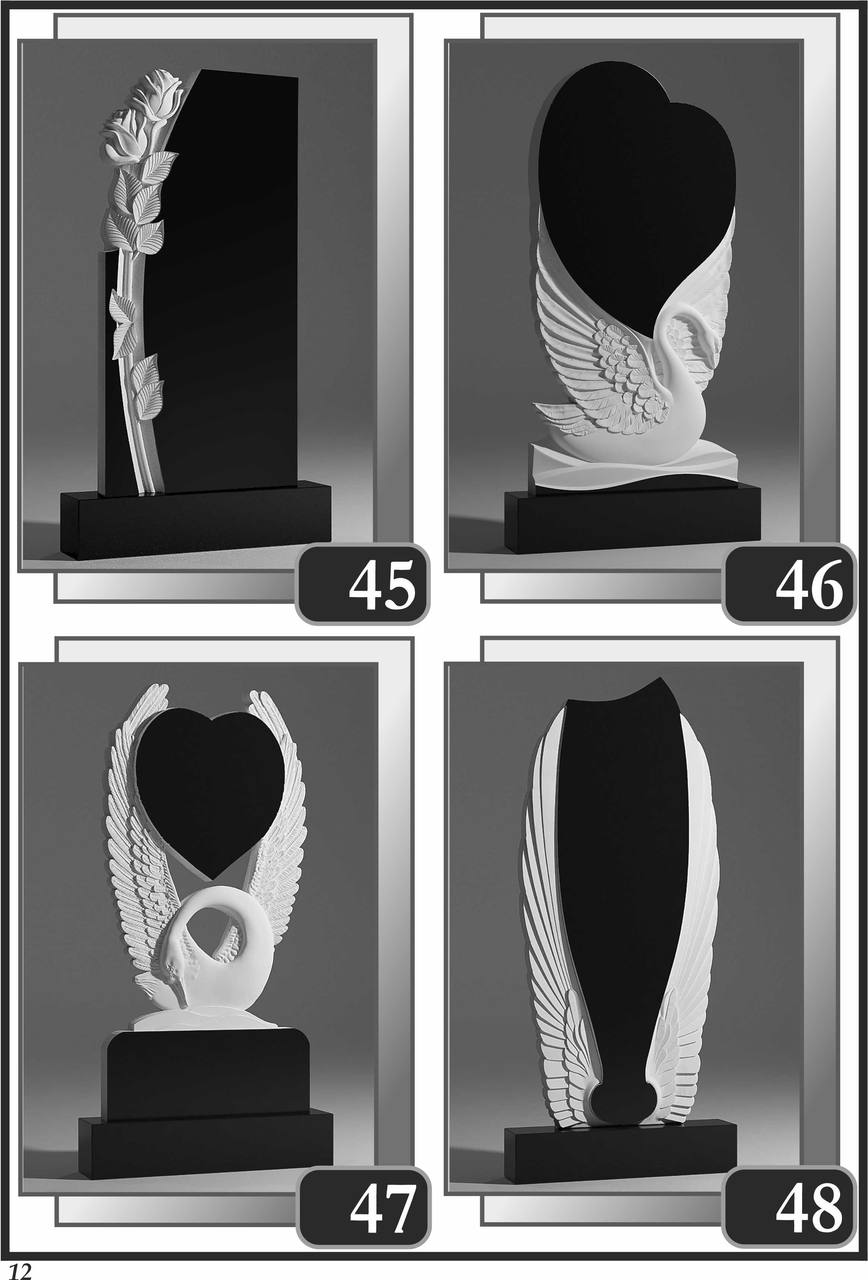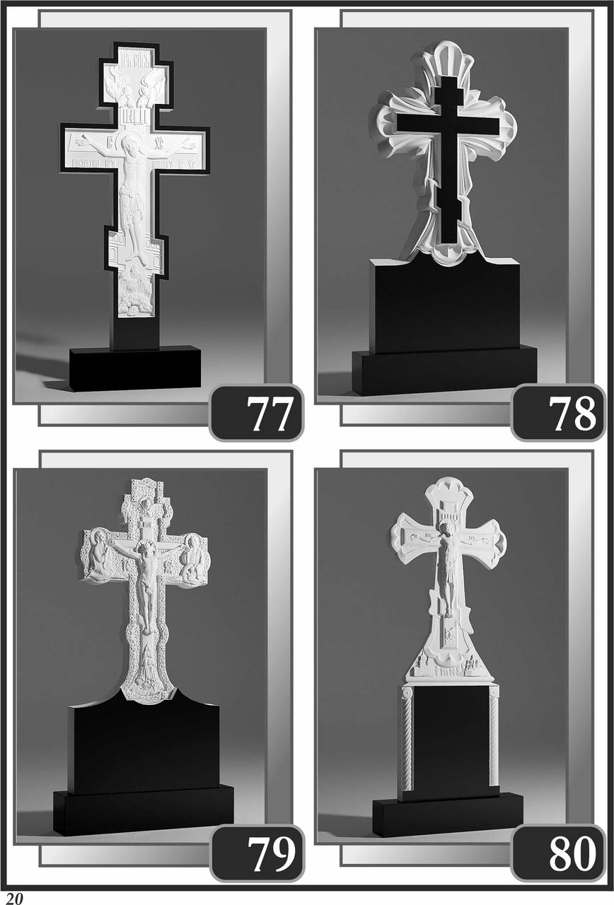 На сторінці зібрані приклади пам’ятників за основними напрямками: від одинарних і подвійних рішень до скульптурних композицій та фотоелементів.