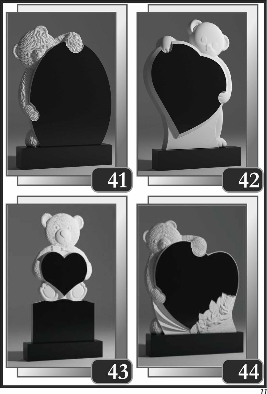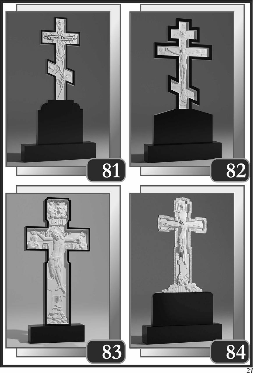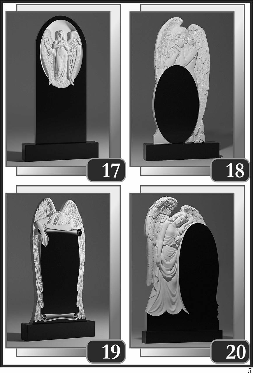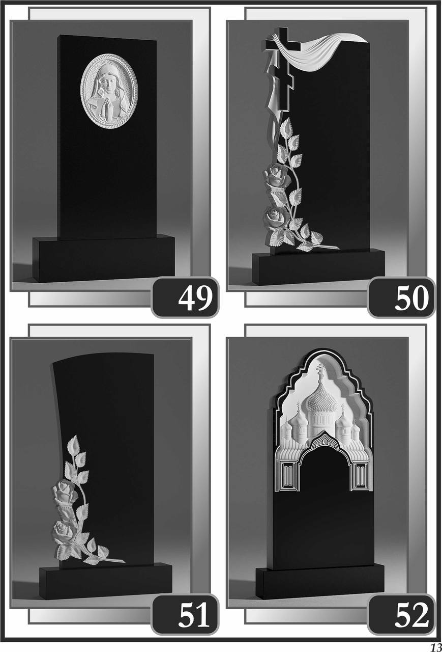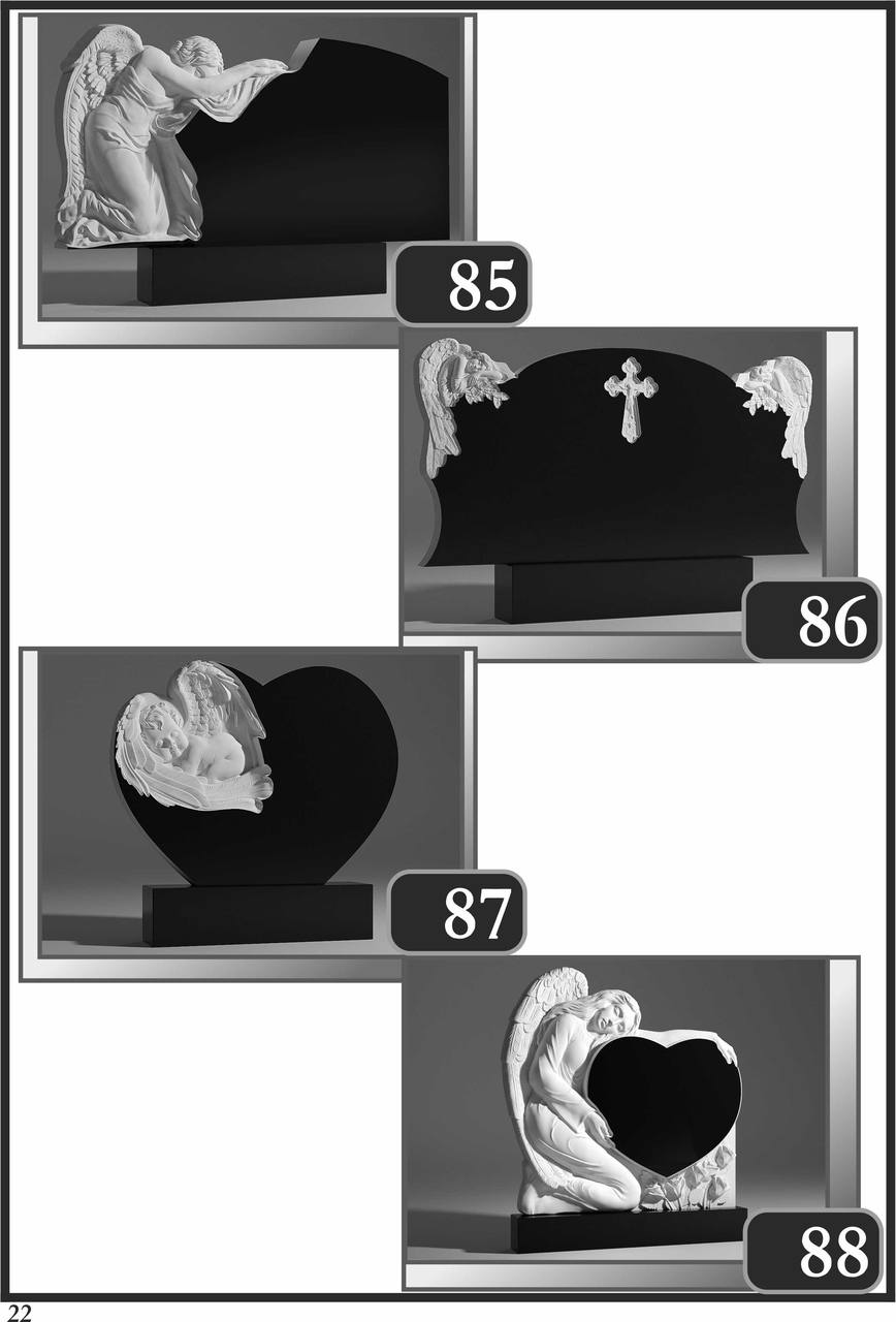 На сторінці зібрані приклади пам’ятників за основними напрямками: від одинарних і подвійних рішень до скульптурних композицій та фотоелементів.