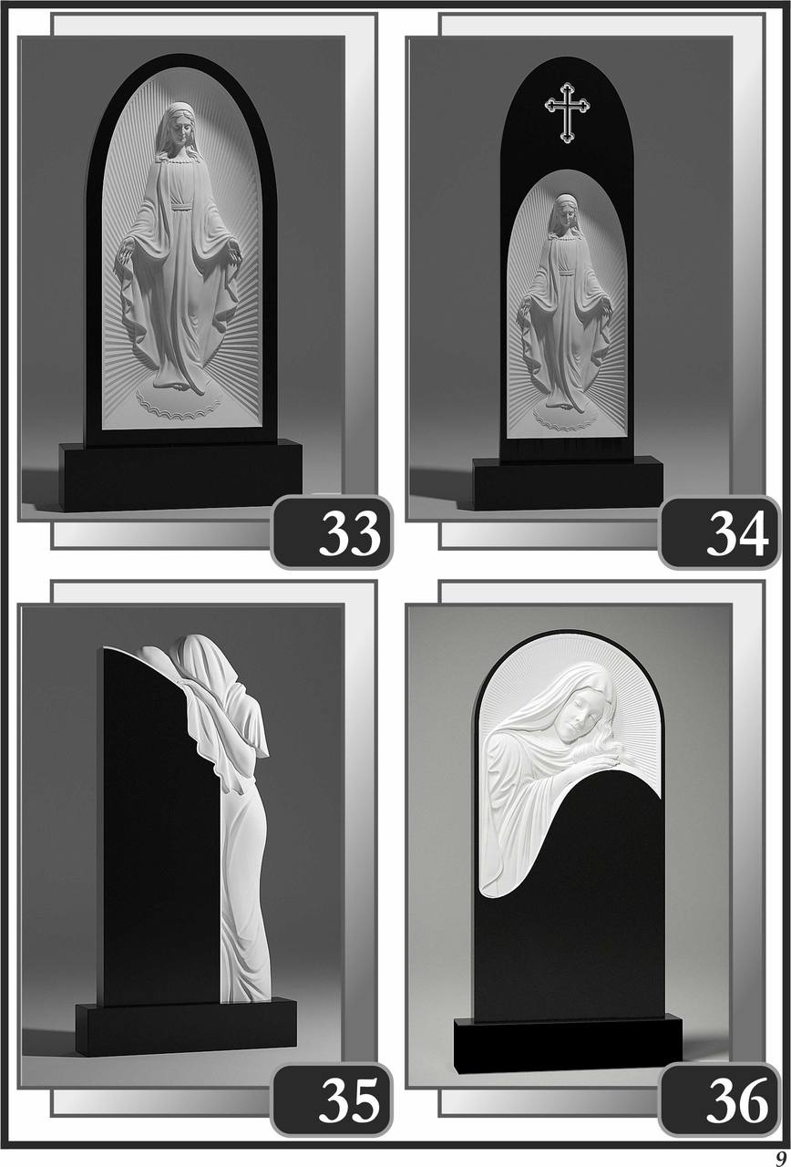 Одинарні місця похованняПодвійні місця похованняСімейні та нестандартні місця похованняСкульптурні пам’ятники та скульптуриФотоскло (фототриплекс)Фотокераміка